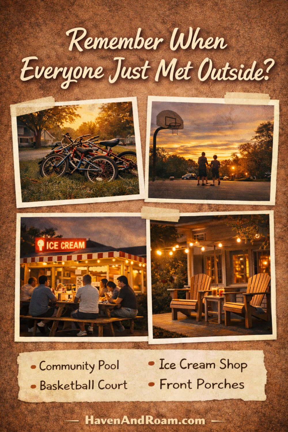 Bikes ended up in a pile somewhere nearby. Someone inevitably brought a kick ball. And eventually the streetlights flicked on and every kid within a three-block radius heard the universal signal: